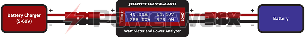 High power electrical systems pose many dangers. It is the user’s responsibility to be familiar with these dangers and take any action necessary to ensure safe use. Shorting a battery or battery charger can have serious consequences including explosion, fire, damage to equipment, or personal injury. Exceeding the rated specifications or shorting the watt meter will cause damage to the meter and void your warranty.